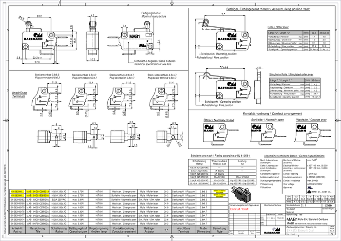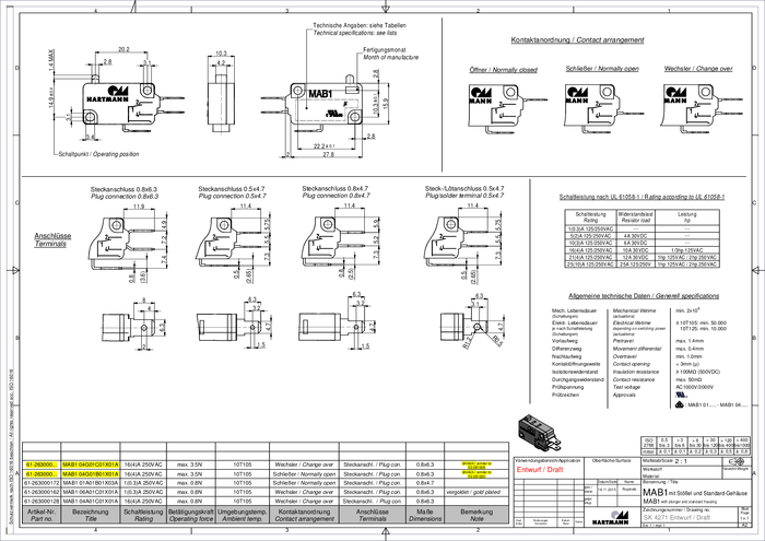 PTR Hartmann 04G01C01X01A Mikroprzełącznik 04G01C01X01A 250 V/AC 16 A 1 x wł/(wł) chwilowy 1 szt.