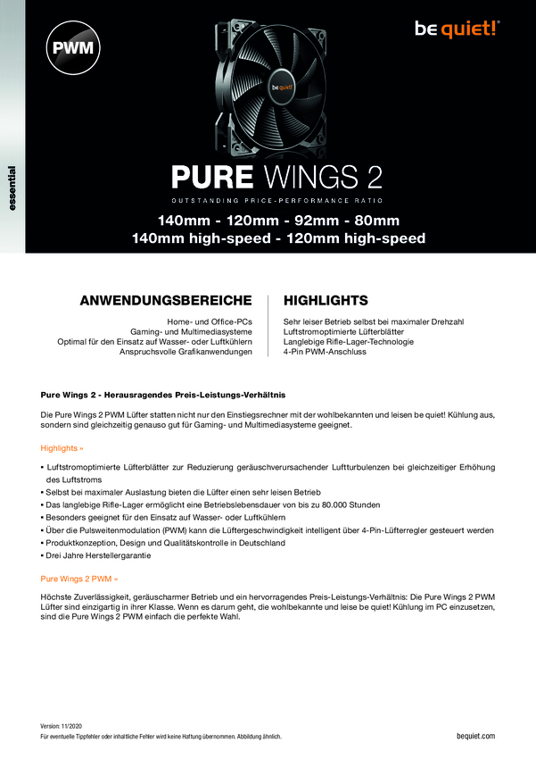 BeQuiet Pure Wings 2 92mm Wentylator do obudowy PC czarny (S x W x G) 92 x 92 x 25 mm