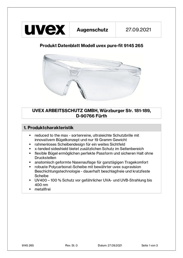 uvex pure-fit 9145265 Okulary ochronne bezbarwny