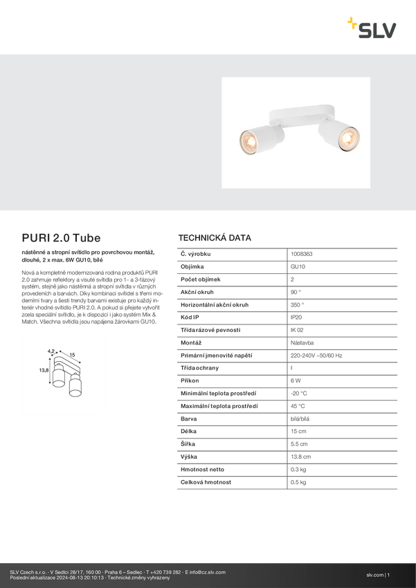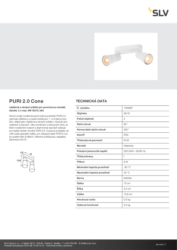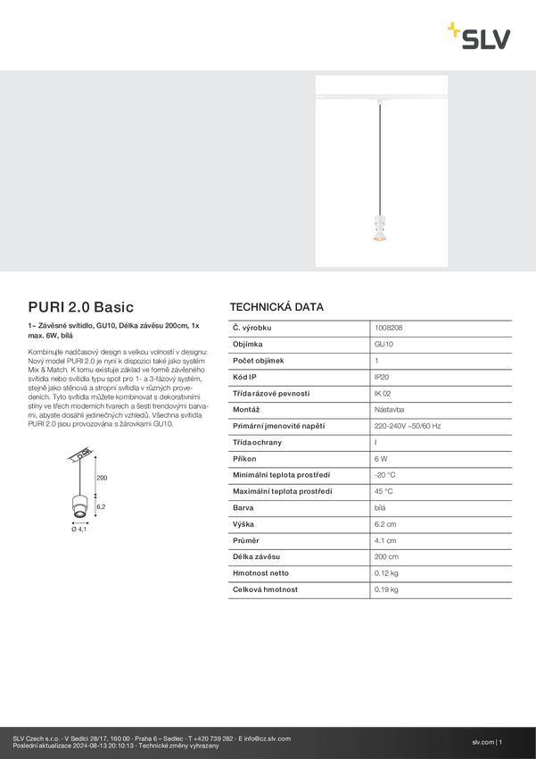 Lampa podwieszana LED SLV PURI 1008208 1-fazowy GU10 6 W biały