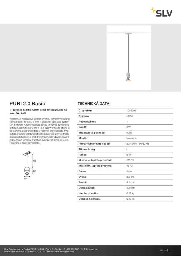 Lampa podwieszana LED SLV PURI 1008209 1-fazowy GU10 6 W szary
