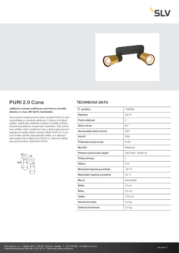Lampa podwieszana LED SLV PURI 1008207 1-fazowy GU10 6 W czarny