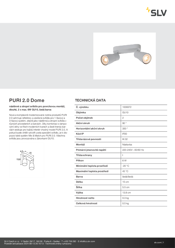 Lampa do systemu szynowego, wysokonapięciowego SLV PURI 1008372 6 W szary