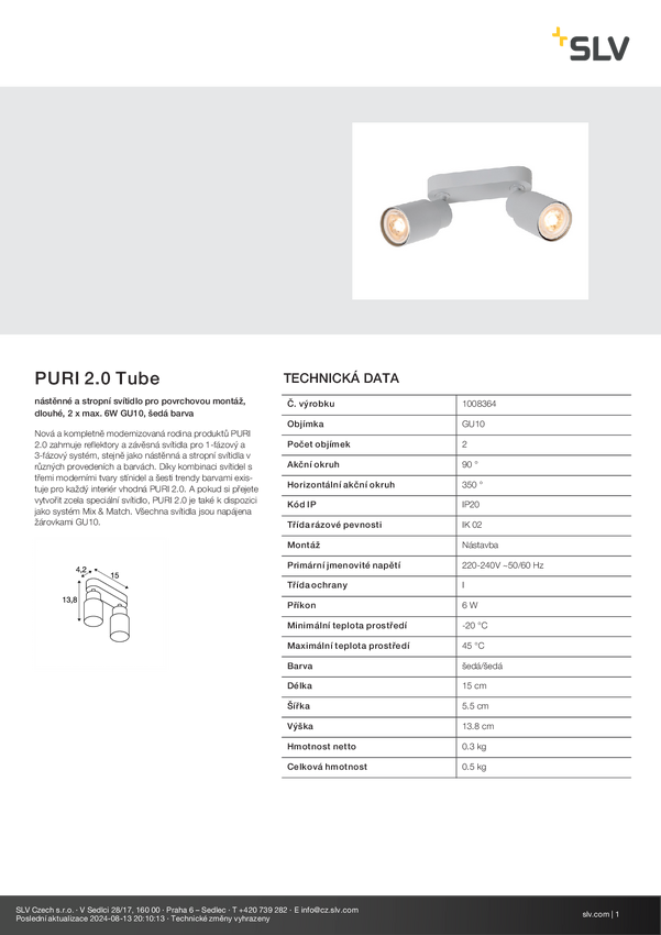 Lampa do systemu szynowego, wysokonapięciowego SLV PURI 1008364 6 W szary