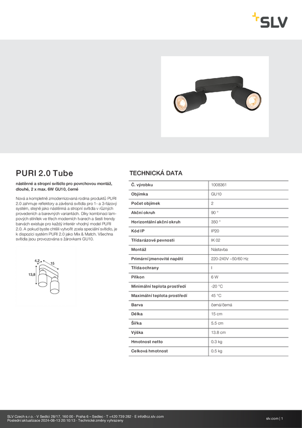 Lampa do systemu szynowego, wysokonapięciowego SLV PURI 1008370 6 W czarny
