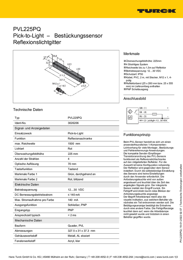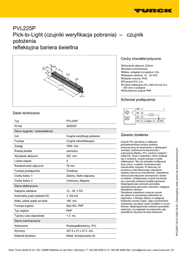 Czujnik umiejscowienia Turck PVL225P 3026207 1 szt.