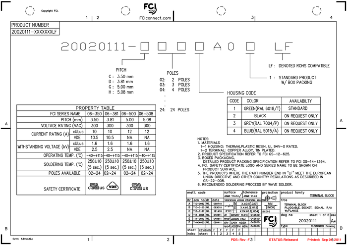ZŁĄCZE 20020111-G041A01LF złącze do PW0045 Raster 5,00mm