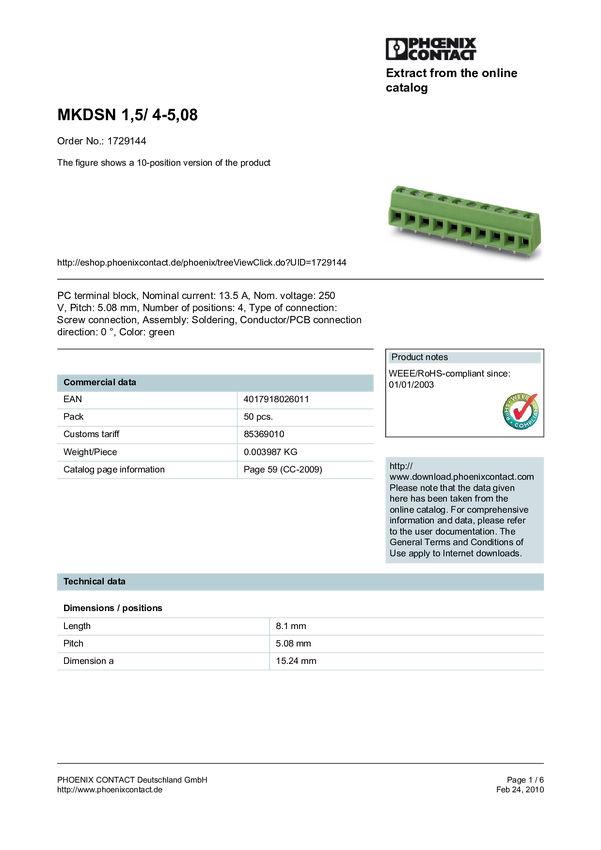 ZŁĄCZE 1729144 do PW0045 na kabelek mkdsn 1,5/4-5,08