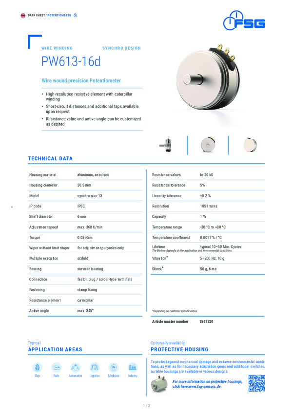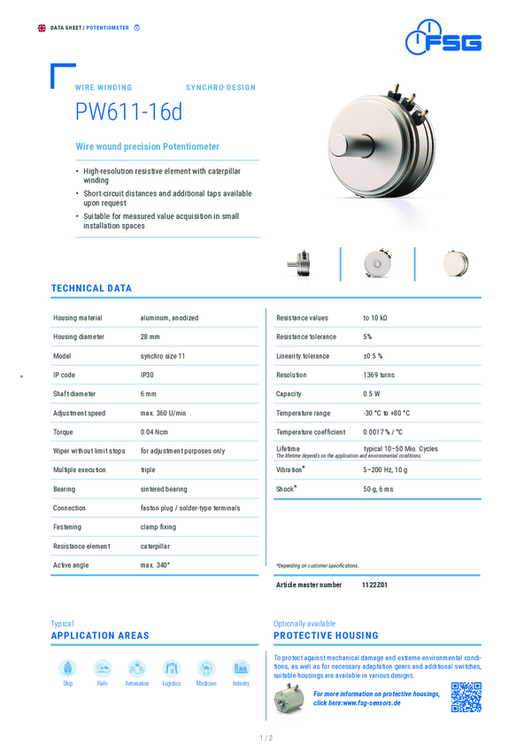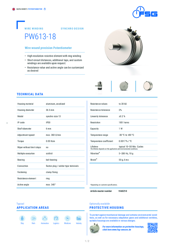 Moc 2,5W; lin 0,5-0,1%; 17ppm; 1570z02-001.106 drutowy Precision Angular Position Transmitter PW620-18d servo mount size 20 winding angle 360° wiper rotatable without limit stops reactive winding 240° resistance 1 kohm ± 1% / 120° shaft 6 mm Ý length from support 14 mm torque 3 10 cmp or 3 0,1 Ncm serwo 2" ośka 6mm, dł.ośki 12 mm; rez.1 k - podobne : PM*CP*50* i PM*FCP50A* na bazie korpusu Sakae można wykonać na zamówienie Średnica 50,8mm; gł. 17,4mm; ośka 6mm dł 12 ( 14 ) mm; elektryczny kąt pracy