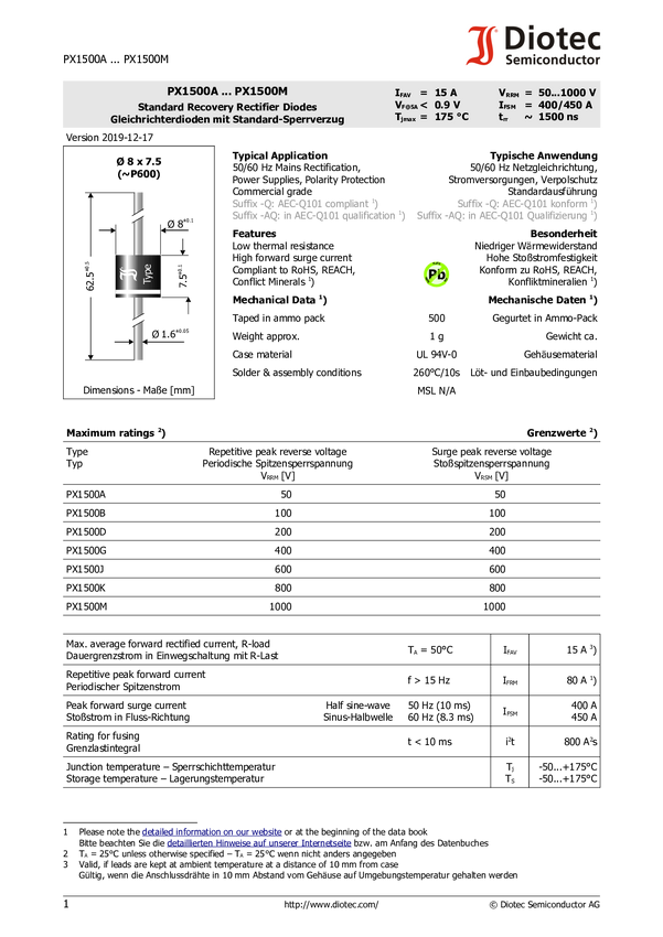 Dioda prostownicza Diotec PX1500G N/A N/A