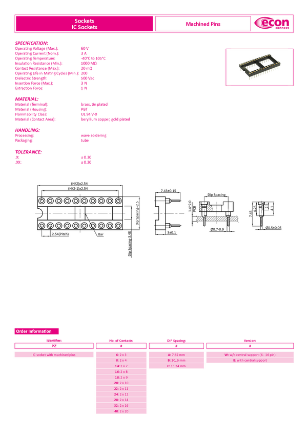 econ connect PZ24CB Podstawka pod układy scalone Ilość styków: 24 precyzyjne styki 1 szt. tuba