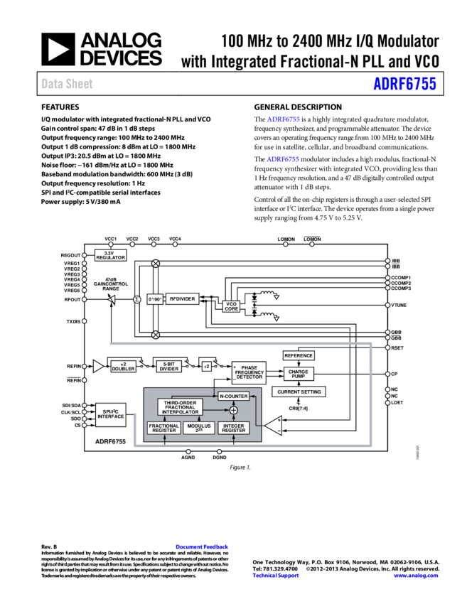 ADRF6755: 100 I/Q Modulator with Integrated Fractional-N PLL and VCO