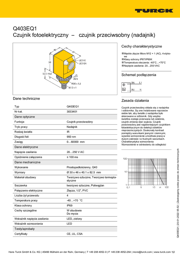 Bezzwrotny czujnik fotoelektryczny Turck Q403EQ20 3034418 1 szt.