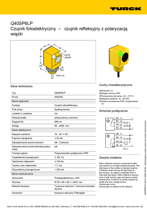 Fotokomórka odbiciowa Turck Q40SP6LP 3032361 1 szt.