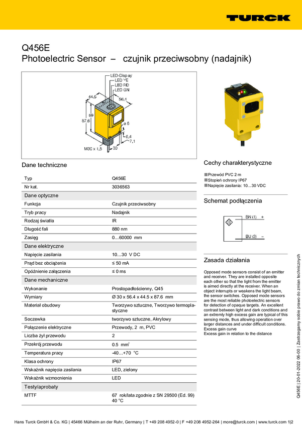 Bezzwrotny czujnik fotoelektryczny Turck Q456E 3036563 1 szt.