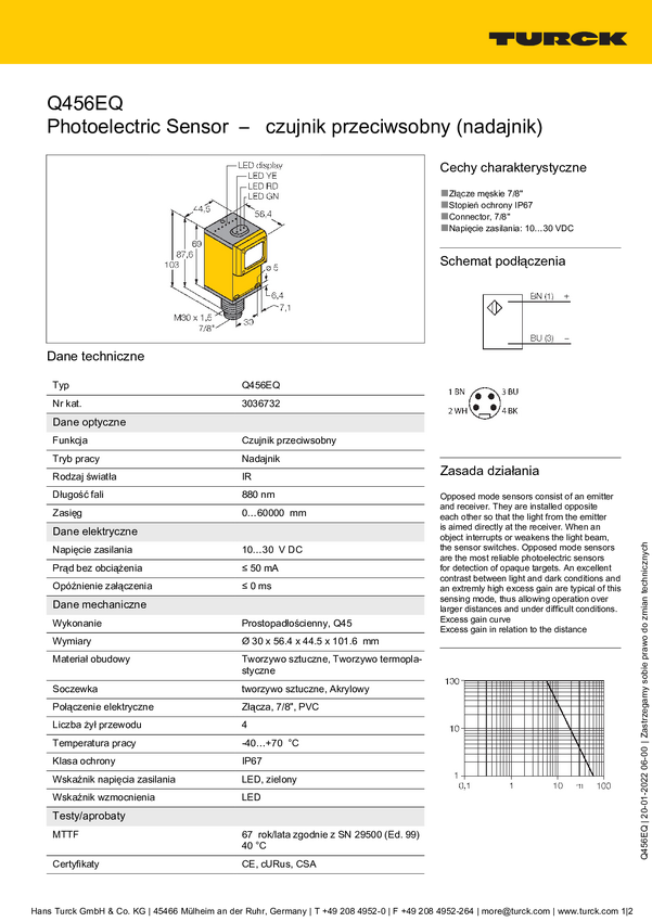Bezzwrotny czujnik fotoelektryczny Turck Q456EQ 3036732 1 szt.