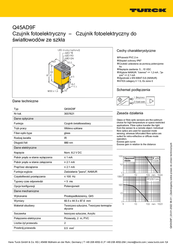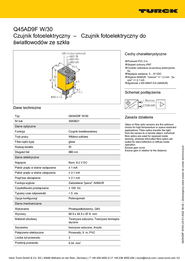 Czujnik światłowodowy Turck Q45AD9FVQ 3059014, 1 szt.