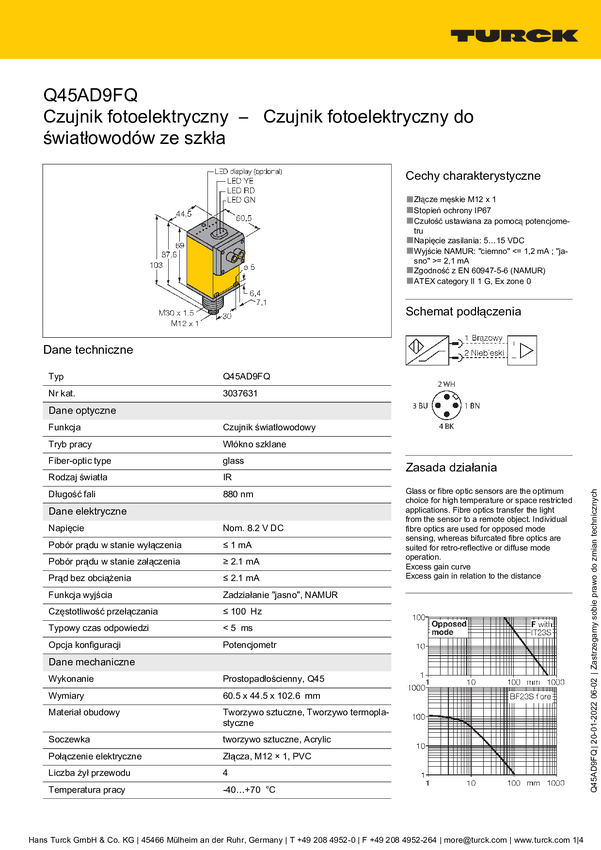 Czujnik światłowodowy Turck Q45AD9FQ 3037631 1 szt.