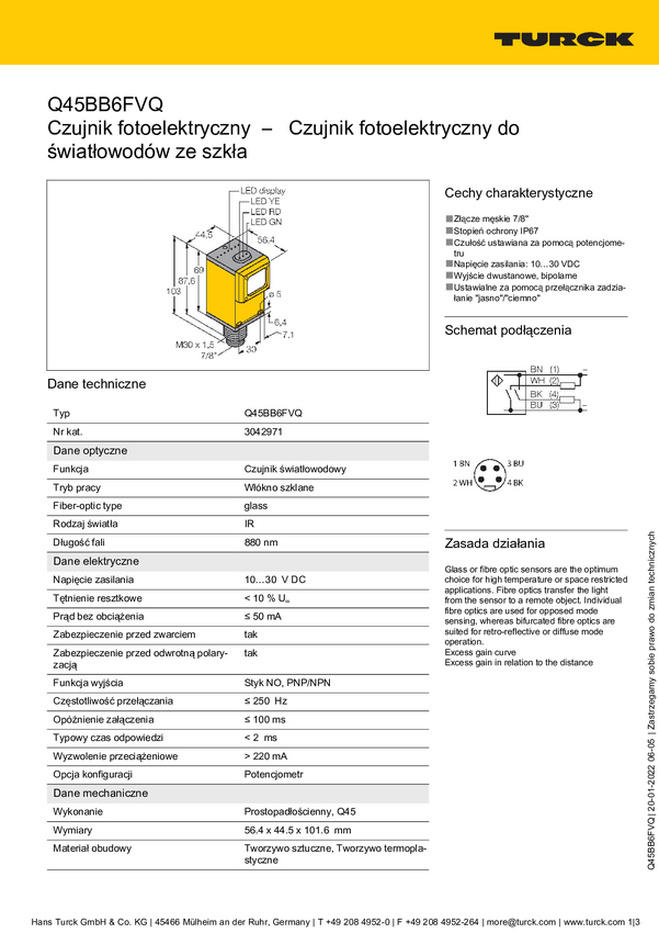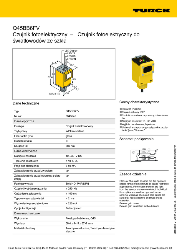 Czujnik światłowodowy Turck Q45BB6FVQ5 3043546 1 szt.