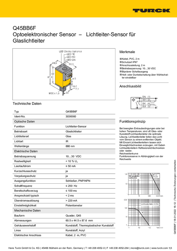 Czujnik światłowodowy Turck Q45BB6F 3036560 1 szt.