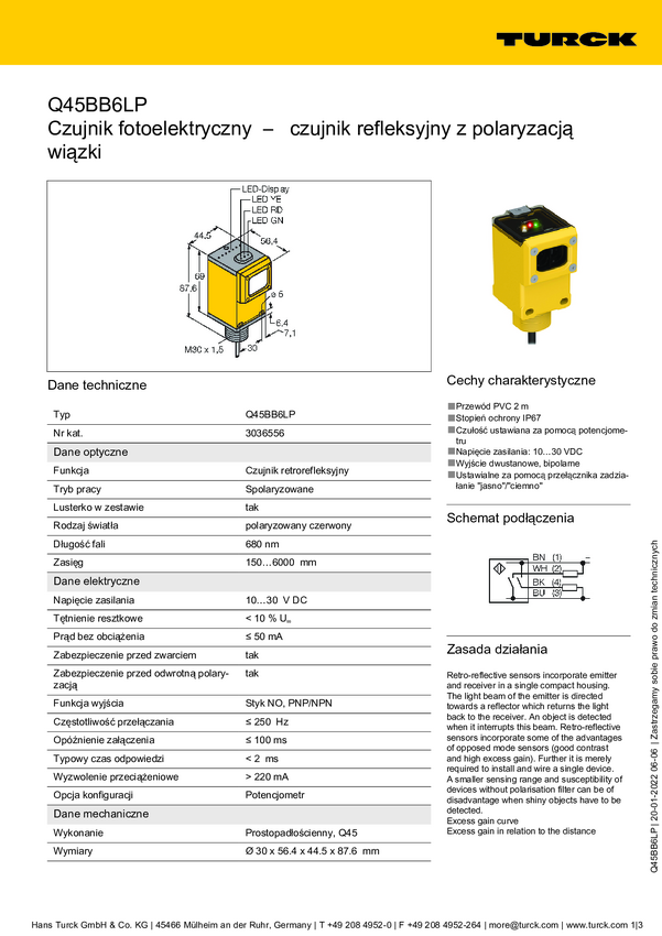 Fotokomórka odbiciowa Turck Q45BB6LP W/30 3038470 1 szt.