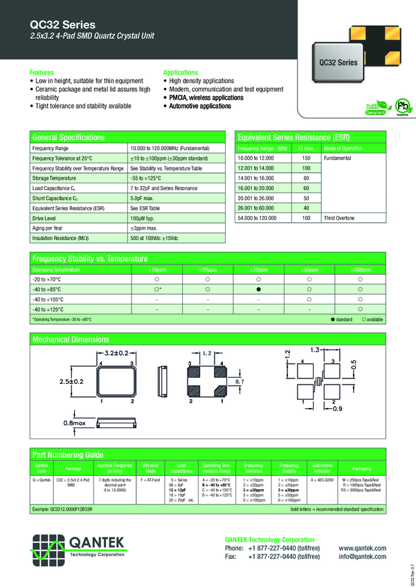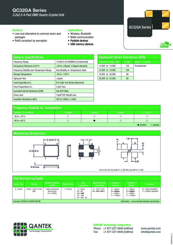 Qantek Kryształ kwarcowy QC32GA20.0000F12B33R3000 SMD 1 szt. taśma na dużej rolce