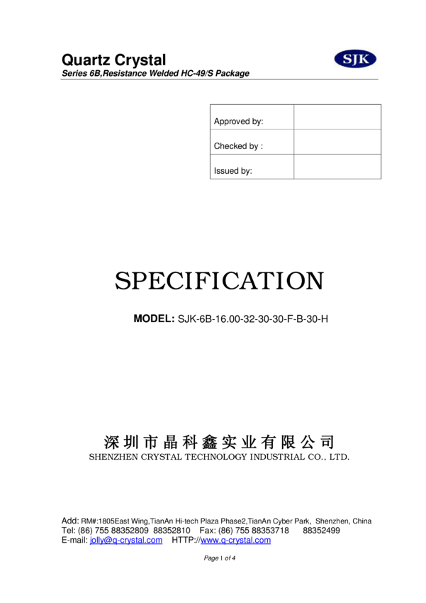 Rezonator kwarcowy miniaturowy 13,56MHz, -40+85C, SJK