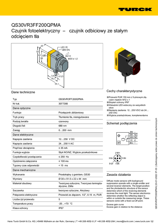 Czujnik dyfuzyjny Turck QS30VR3FF200QPMA16 3073073 1 szt.