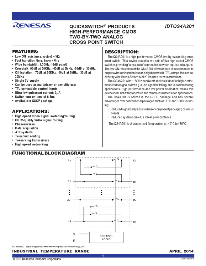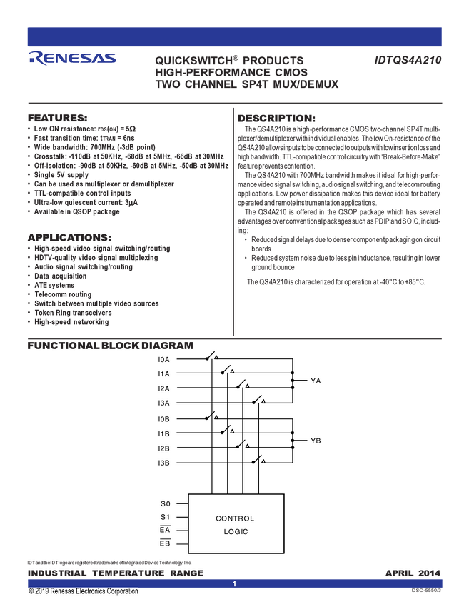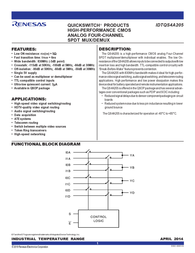 4-Channel 2:1 Analog Mux/Demux