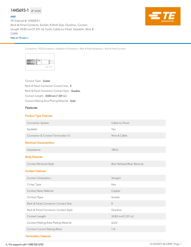 TE Connectivity 1445693-1 TE AMP Quadrax Products, 1 szt.
