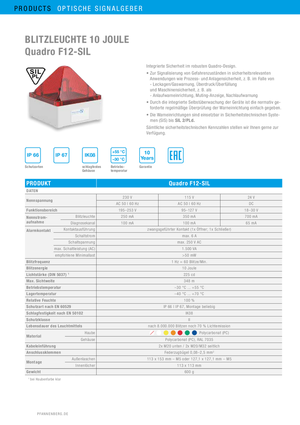 Lampa migająca Pfannenberg QUADRO F12-SIL 24 DC RD czerwony 24 V/DC