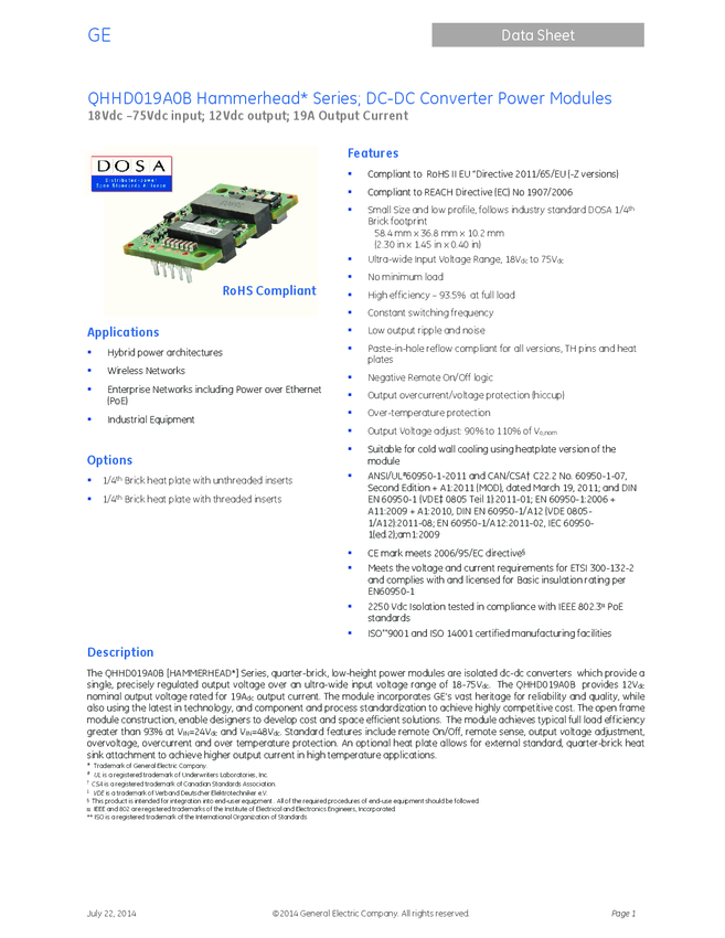 Module DC-DC 1-OUT 12V 19A 228W 8-Pin Quarter-Brick