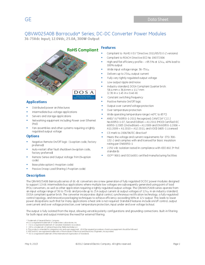 Module DC-DC 1-OUT 12V 39A 468W 16-Pin Quarter-Brick Tray