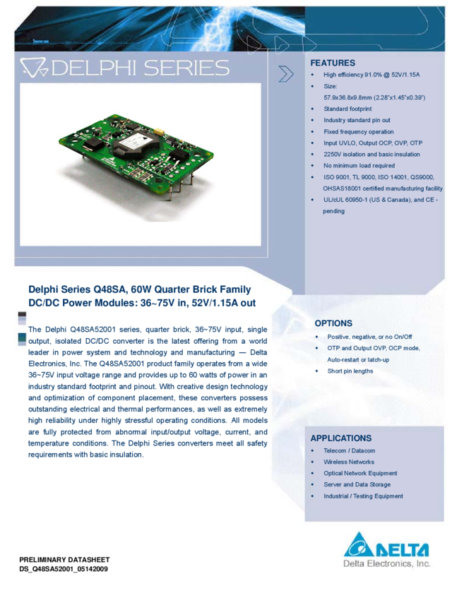 Module DC-DC 1-OUT 52V 1.15A 60W 6-Pin Quarter-Brick
