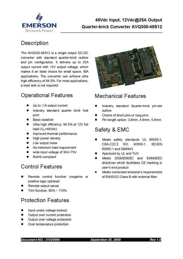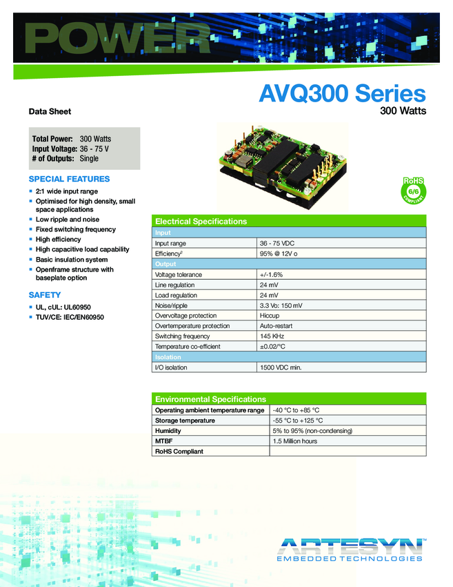 Module DC-DC 1-OUT 12V 25A 300W 8-Pin Quarter-Brick