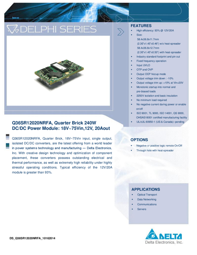 Module DC-DC 1-OUT 12V 20A 240W 8-Pin Quarter-Brick