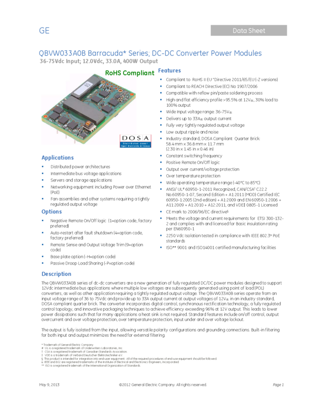 Module DC-DC 1-OUT 3.3V/5V 10A 648W 18-Pin Quarter-Brick Tray/Box