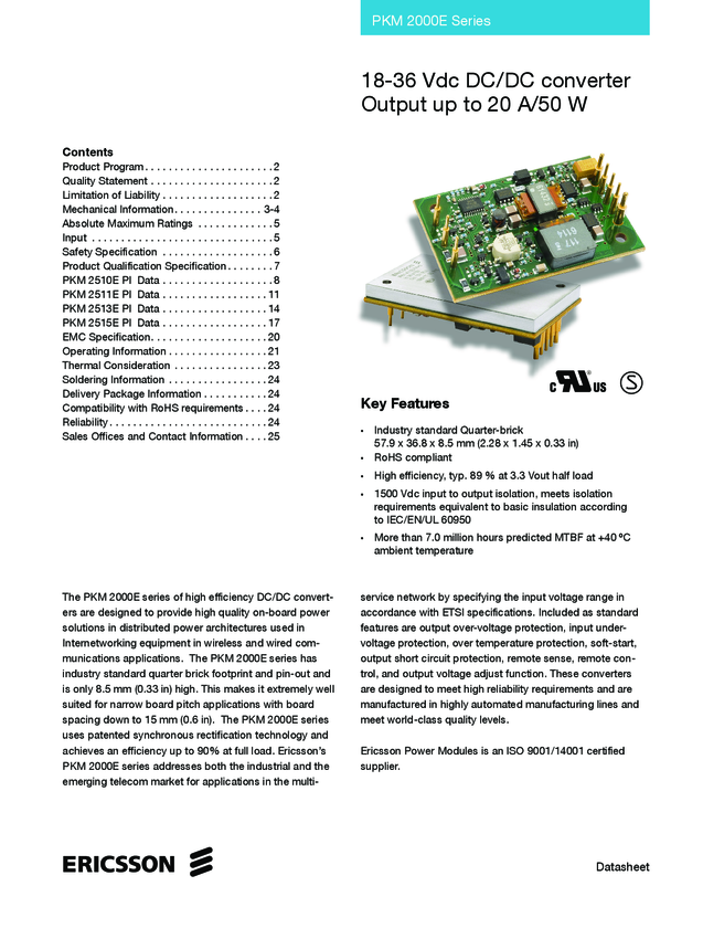 Module DC-DC 1-OUT 3.3V 15A 50W 8-Pin Quarter-Brick