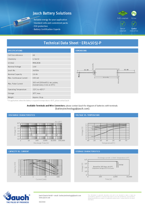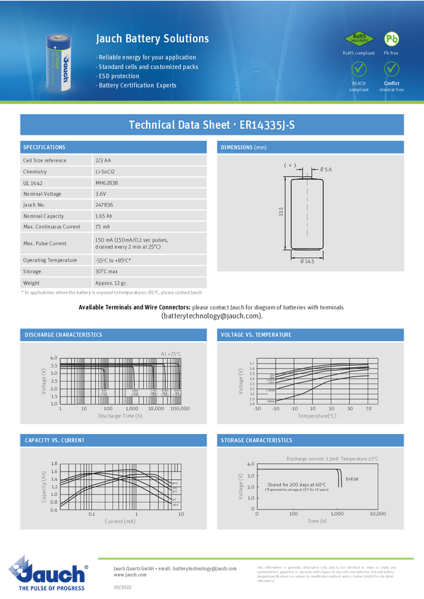 Bateria AA Jauch Quartz, 3.6 V, 2600 mAh, litowe, U-końcówka do lutowania, 1 szt.