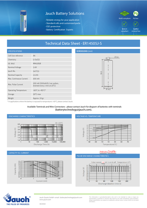 Bateria AA Jauch Quartz, 3.6 V, 2600 mAh, litowe, pin lutowniczy, 1 szt.