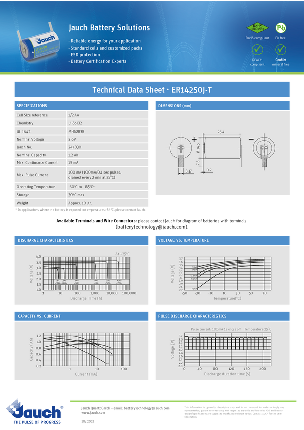 Bateria 1/2 AA Jauch Quartz, 3.6 V, 1200 mAh, litowe, U-końcówka do lutowania, 1 szt.