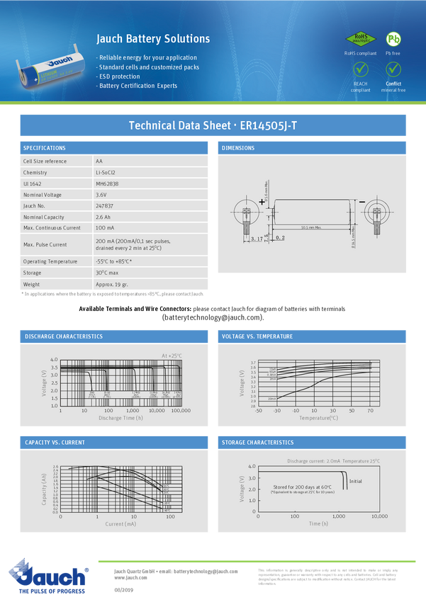 Bateria A Jauch Quartz, 3.6 V, 3600 mAh, litowe, U-końcówka do lutowania, 1 szt.