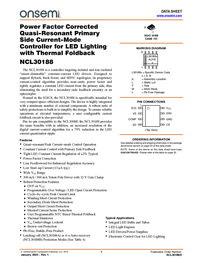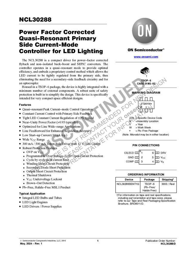 LED Driver, Power Factor Corrected Quasi-Resonant Primary Side Current Mode Controller
