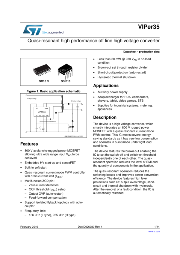 VIPerPlus family: Quasi-resonant high performance off line high voltage converter