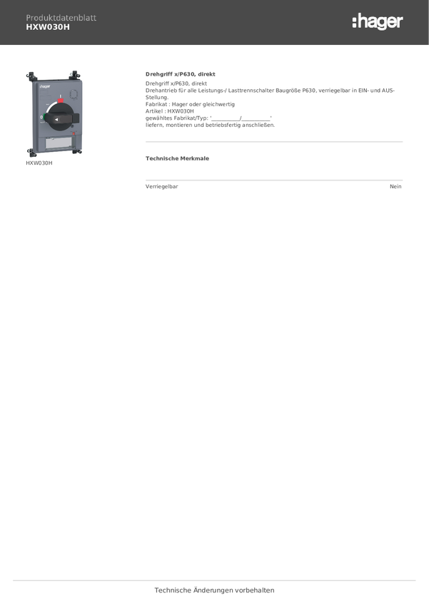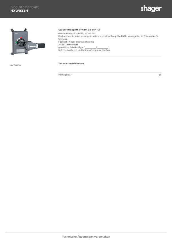 Hager VZ308N Rękojeść tworzywo sztuczne 1 szt.
