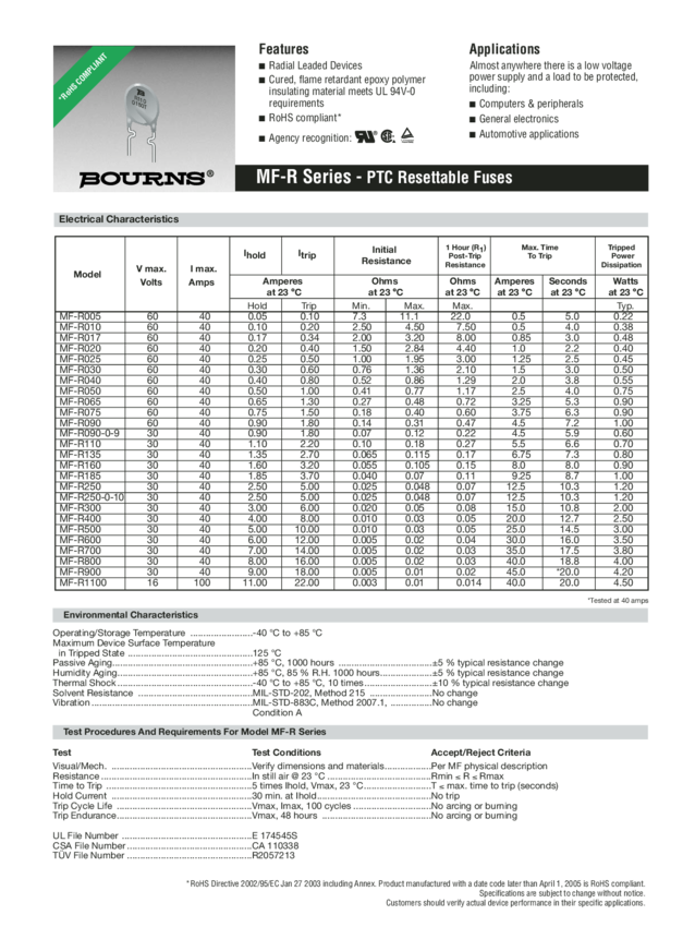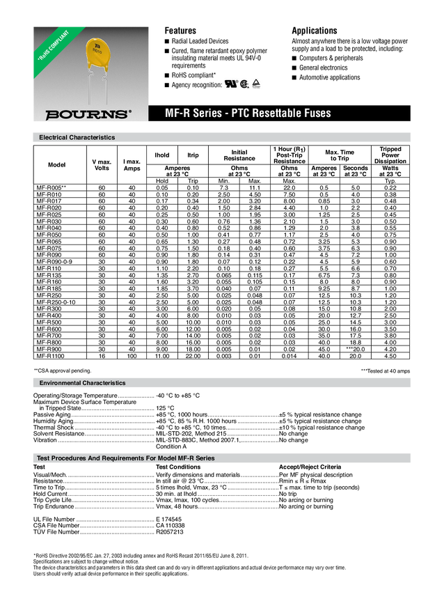 Bezpiecznik PTC Bourns MF-R005, 1 szt.