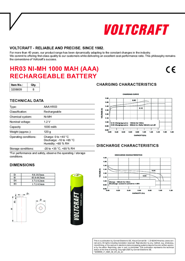 Akumulator AAA/R03 VOLTCRAFT VC-16043045, NiMH, 1000 mAh, 1.2 V, 8 szt.
