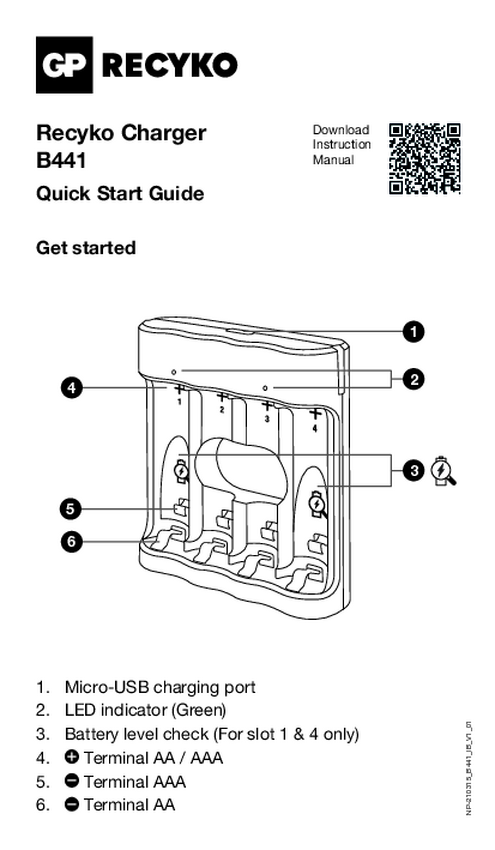 Akumulator AAA/R03 GP "Aktion Gratis Ladegerät" USB-Modell Ladegerät GP B441 inkl. 4x AAA-Akku, NiMH, 850 mAh, 1.2 V, 1