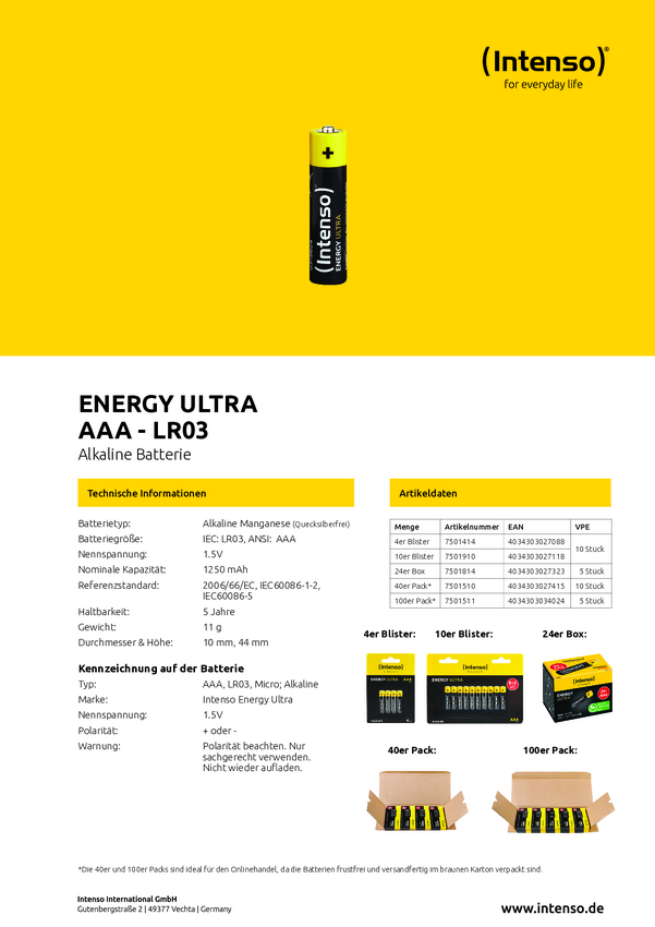 Bateria AAA/R03 Intenso 7501414 1250 mAh 1.5 V 4 szt.