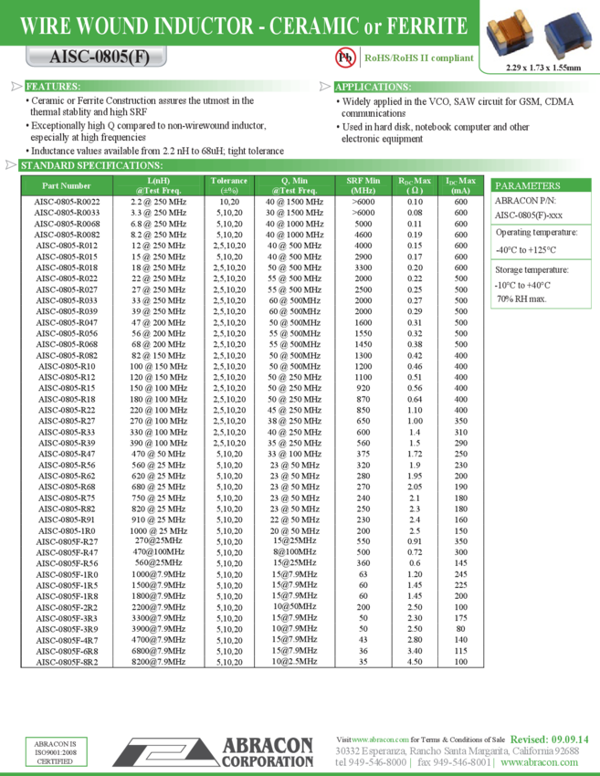 Ind Power Wirewound 100nH 10% 100KHz Ferrite 53A T/R